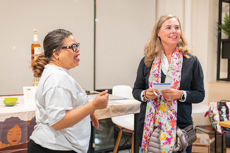 Earlier this spring, Shapes & Colors partnered with our friends from Blue Skies Eco-Scaping to celebrate our clients together. We hosted an appreciation event at Gather with the help of some exciting local businesses. We sipped spirits with 2 Brown Girls & Bourbon, a duo who offers bourbon tastings. DOH! bakery and breads brought decadent breads and artisanal pastries for us all to enjoy. We sampled Italian wines from Caffespresso and learned more about their wine club. Clients connected with Prudence Justis, a local real estate professional who serves Richmond and surrounding counties.